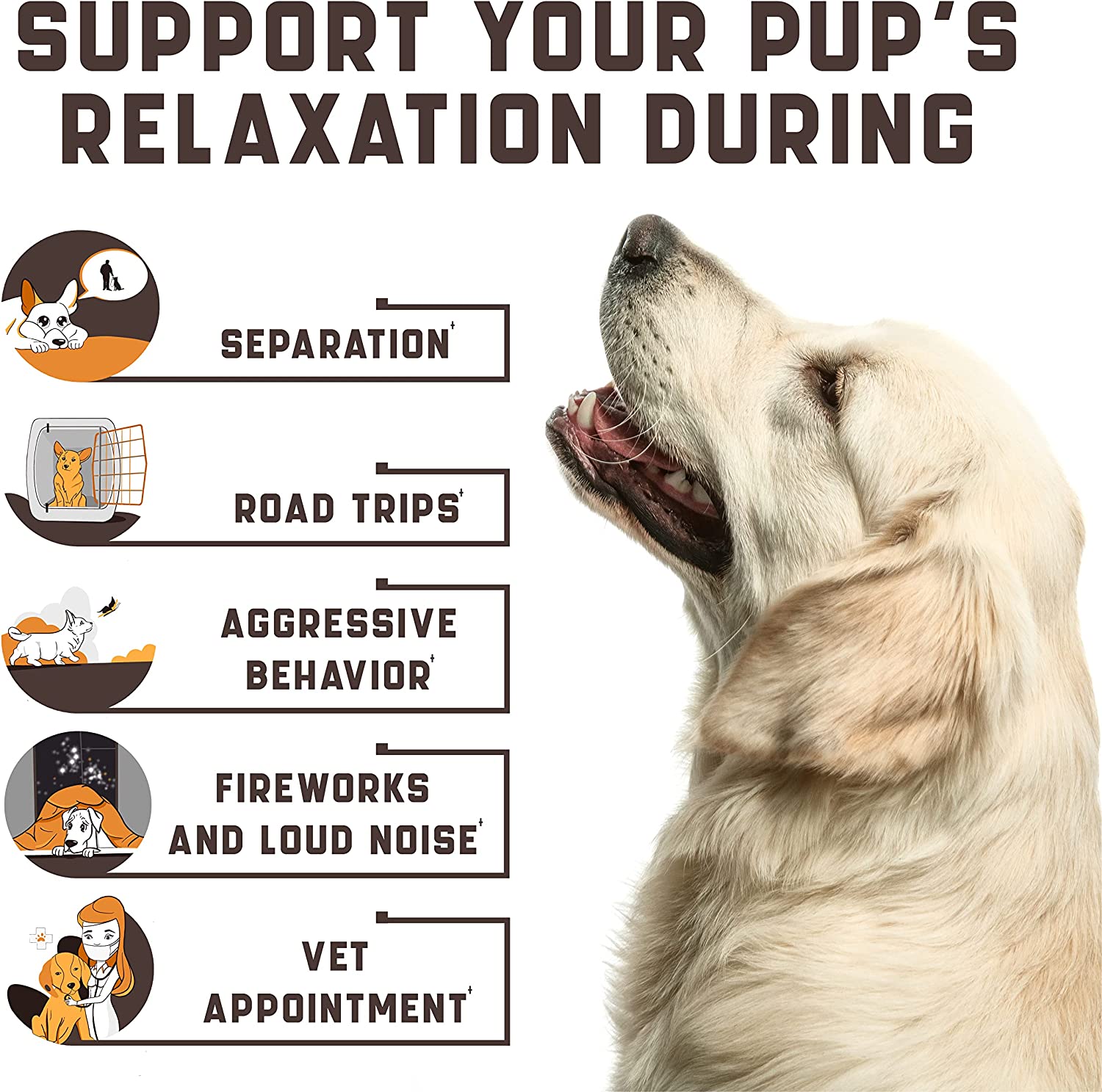 • Help Promote Calmness: dog calming chews with valerian root & passionflower support your pup’s relaxation during worrying situations like storms, fireworks, or separation. They help your pet stay peaceful & friendly.